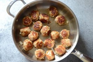 Formamos bolitas (24-26 piezas) a partir de carne picada preparada.