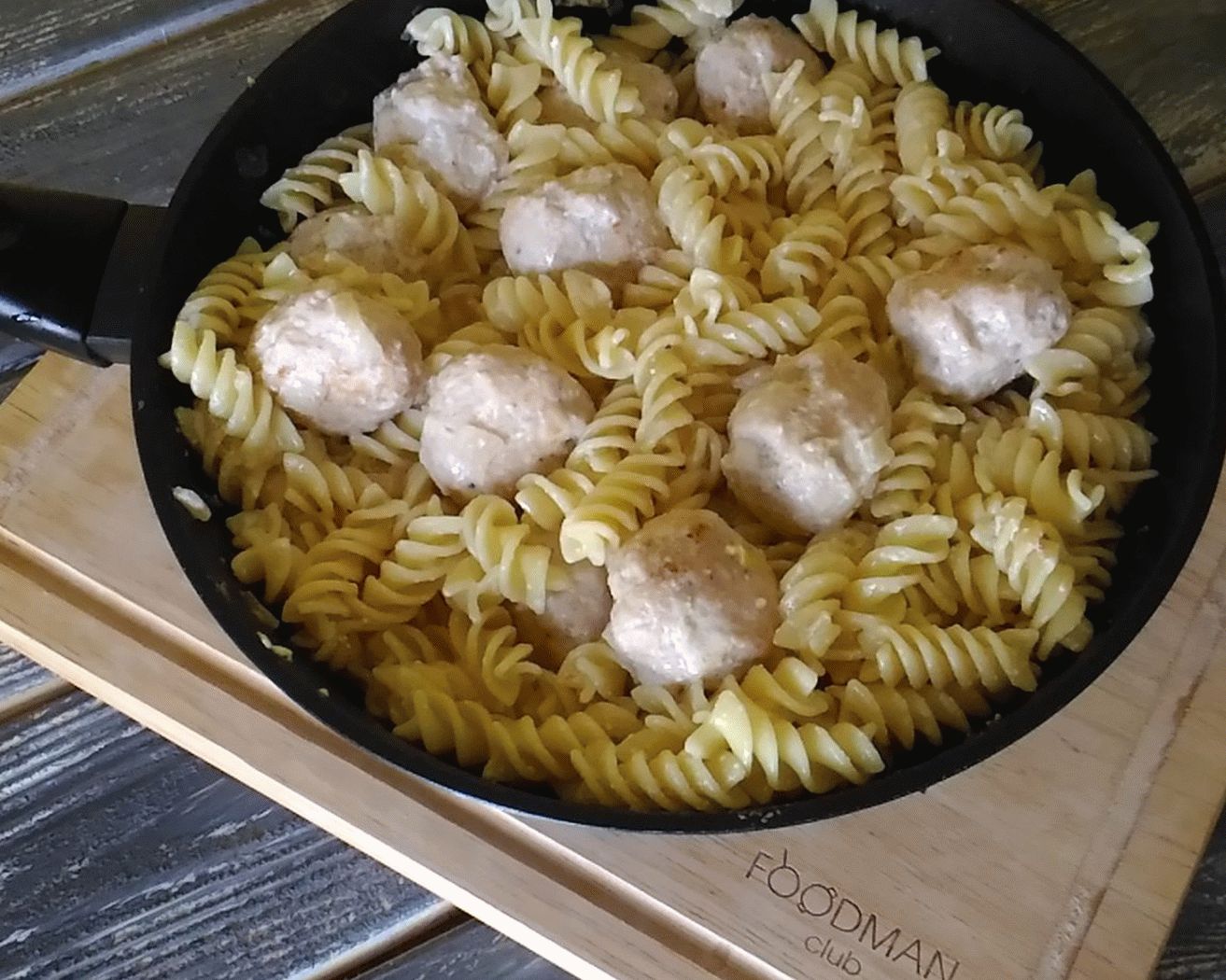 Esta es nuestra comida más simple y favorita con mi hijo: pasta y albóndigas Y cocinar rápidamente, y resulta delicioso.