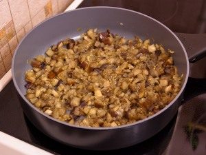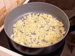 - Freír las cebollas picadas en una sartén con mantequilla hasta que dorado.