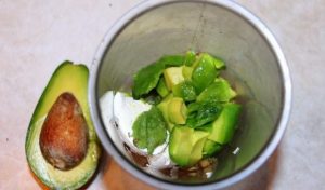 - En 50 ml de agua caliente, revuelva dos cucharadas de instantáneo gelatina, agregue al aguacate.