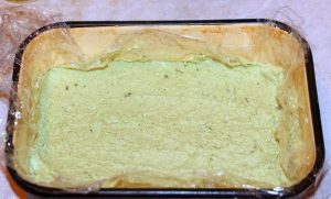 - Cubra el cortador de galletas con film transparente, ponga mucho aguacate, poner en el refrigerador.