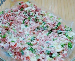 - Tres quesos en un rallador. Añadir al relleno y mezclar.
