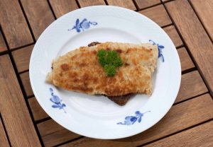 Enrolle el filete de bacalao preparado en harina, sumérjalo en el huevo, luego en pan rallado y poner en aceite caliente.