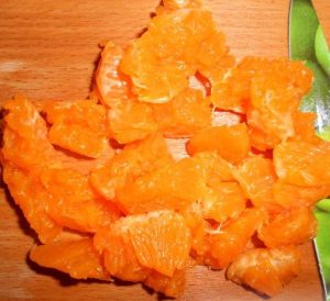 - Limpiamos la mandarina, la dividimos en rodajas.