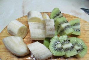 - Mezcle el jugo de mandarina, kiwi y plátano. Golpea con una licuadora homogeneidad, agregue miel al gusto y golpee más.