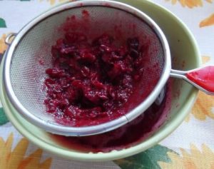 - Exprimimos las bayas a través de un tamiz para separar el pastel del jugo.