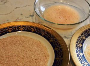 - Rompe el segundo huevo en un recipiente separado y bátelo ligeramente. para que la yema se mezcle con proteína. Verter en un platillo migas de pan en las que tienes que enrollar arroz pelotas