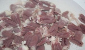 - Enjuague los corazones, córtelos en 2 mitades y retírelos restos de sangre. Hervir hasta que estén tiernos. El fuego debe ser pequeño No te olvides de quitar la espuma.