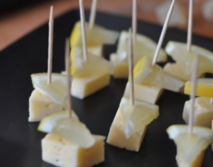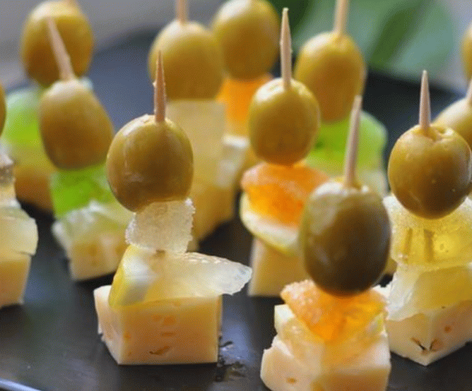 - El paso final es una aceituna por cada brocheta. Aperitivo listo!
