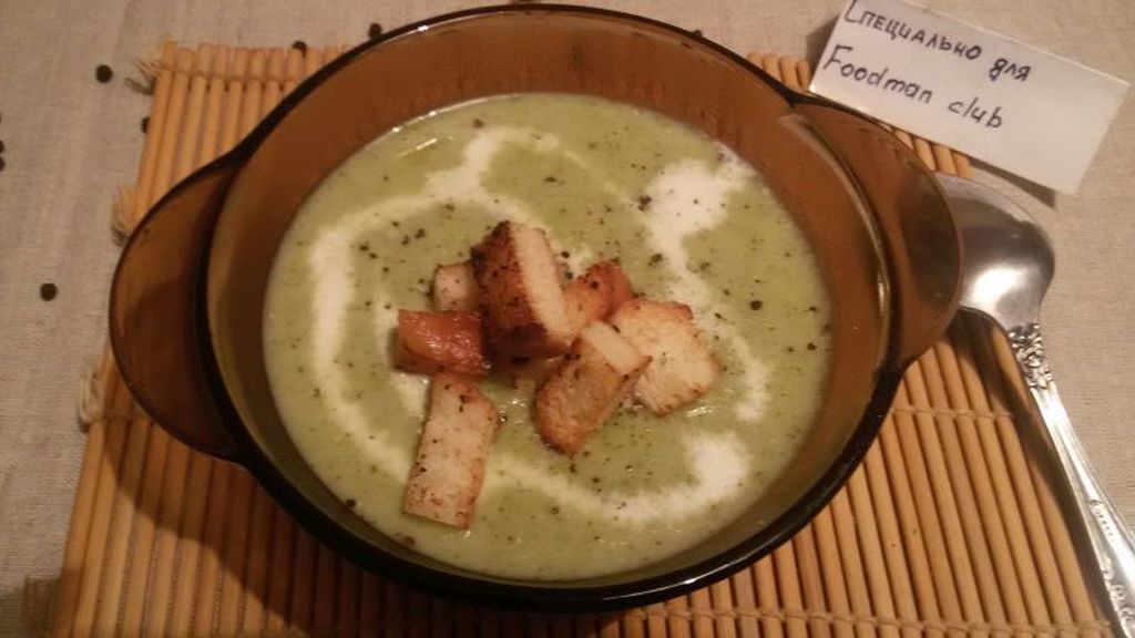 Sopa ligera y sabrosa se puede preparar en casa con brócoli con galletas fragantes Usa una licuadora para hacer sopa de puré que a los niños les encanta.