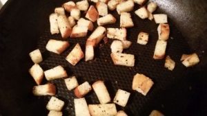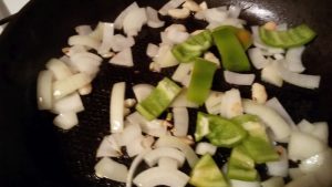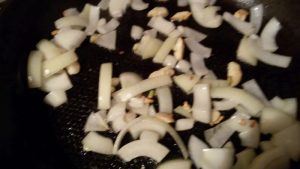 - Poner en la sartén a la cebolla con ajo. Salteado 3 minutos