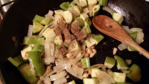 - Freír en aceite con especias en las que se cocinan las verduras.