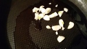 - Saltee el ajo en aceite vegetal durante 2 minutos.