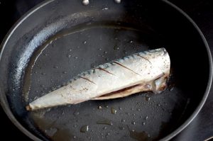 La caballa cocinada en la sartén es rápida, sabrosa y Opción democrática de la cena casera. Apto para vino blanco.