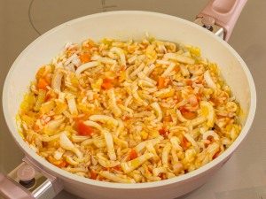 - A continuación, ponga los calamares, ligeramente sal, pimienta.