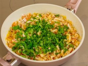- Después de un minuto agregue verduras finamente picadas y retire del fuego.