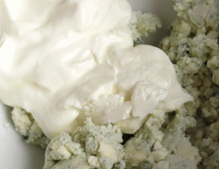 - Puré de queso azul a fondo con un tenedor.