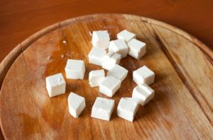 - Pepino y queso feta cortados en cubos pequeños.