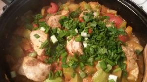 - 7 minutos antes de cocinar, agregue el cilantro picado y la cebolla.