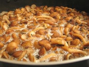 - Hervir los champiñones para completar en aproximadamente media hora (exacto el tiempo depende del tipo de hongo).
