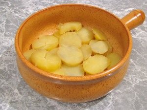 - Pon las cebollas fritas y el resto de las papas hervidas.