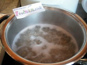 - Enjuague la cebada con cuidado (el agua debe estar limpia). Poner en una olla de agua hirviendo, cocinar hasta que aparezca espuma. Retirar del fuego, escurrir con un colador.