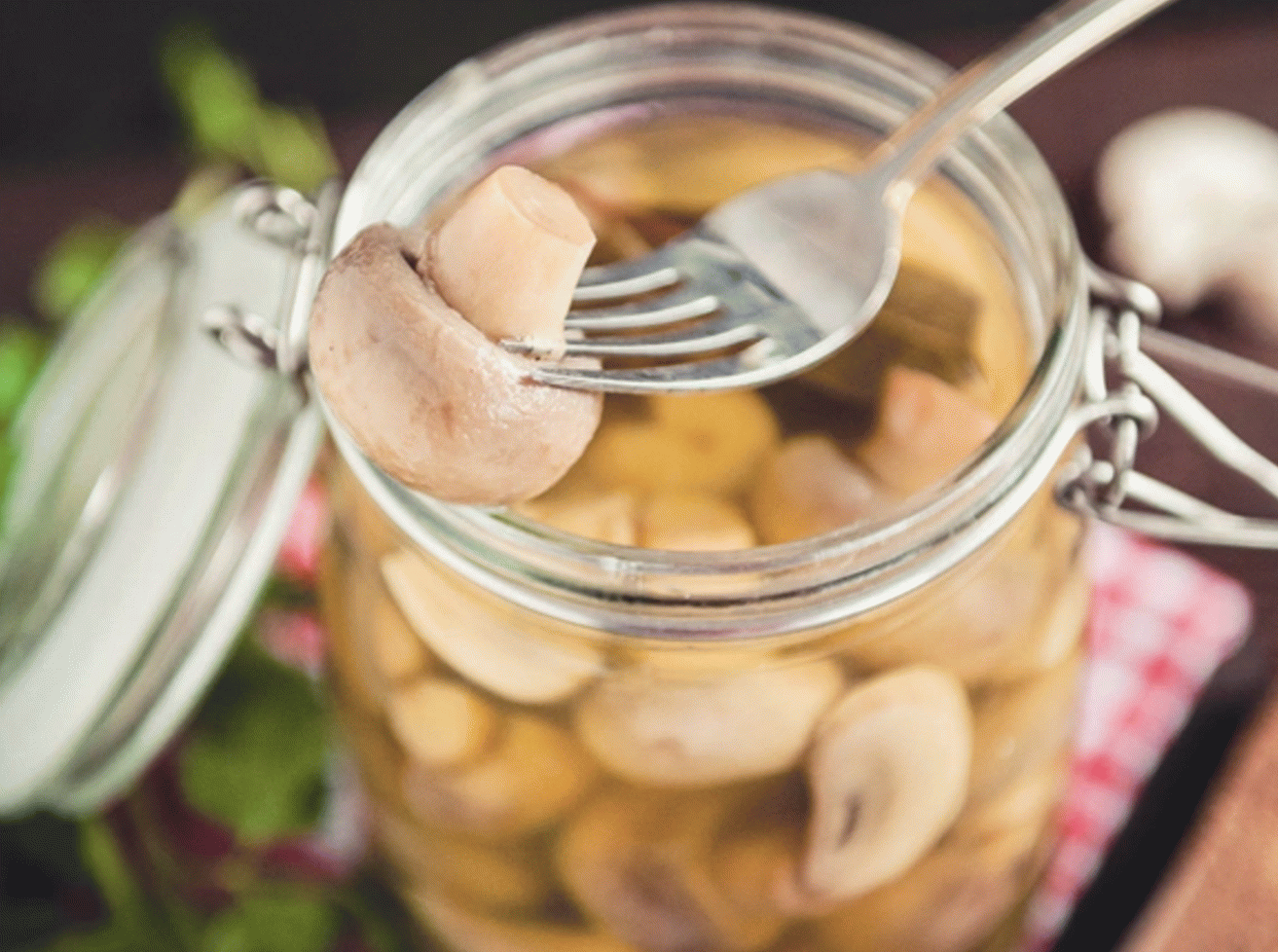 - En la marinada hirviendo agregue los champiñones, cocine hasta que hierva.