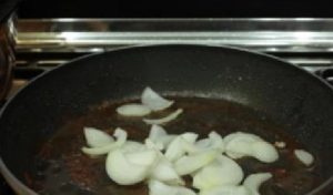 - Calienta el aceite en una sartén y agrega cebollas finamente picadas, cocina hasta que esté suave.