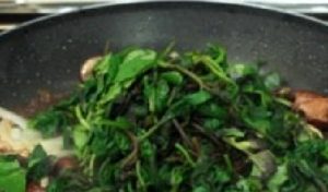 - Agregue las espinacas, el ajo, espolvoree con sal y pimienta.
