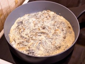 - Champiñones picados en rodajas pequeñas en una pequeña cantidad de aceite vegetal durante diez minutos. Agregue un poco de sal y pimienta.