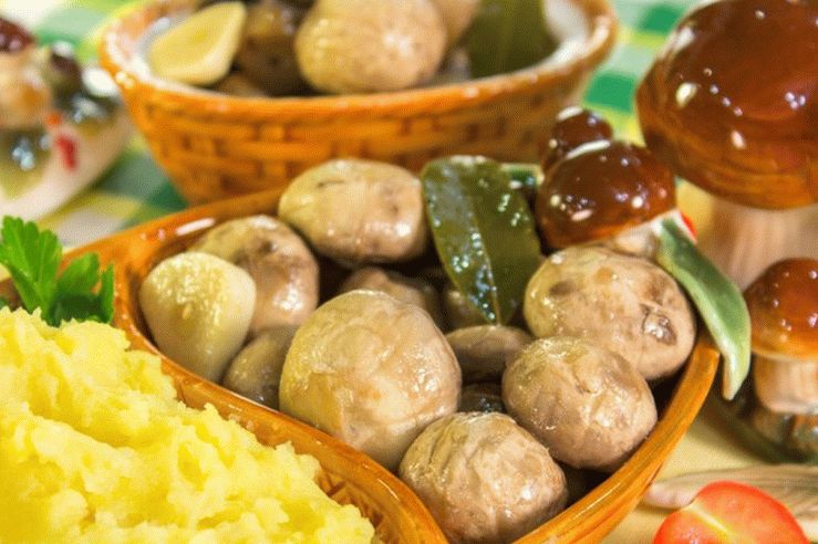 Para esta receta, es recomendable recoger champiñones pequeños. talla única para que se puedan marinar enteros. Las setas cocinadas en casa se almacenan en el refrigerador por no más de una semana. Se pueden servir en ensaladas o con papas hervidas. De esta cantidad de comida, dos latas de deliciosas Champiñones de 0,5 litros. Deja el día para refrescarte champiñones en el refrigerador.
