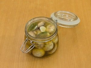 - Organizar los champiñones en dos frascos de medio litro, suavemente encima vierta la marinada caliente.