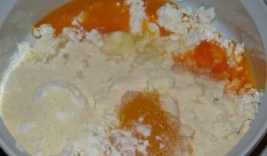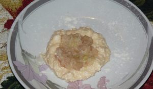 - En la mezcla preparada, rallar el pelado manzanas Si la masa es muy líquida agregue sémola.