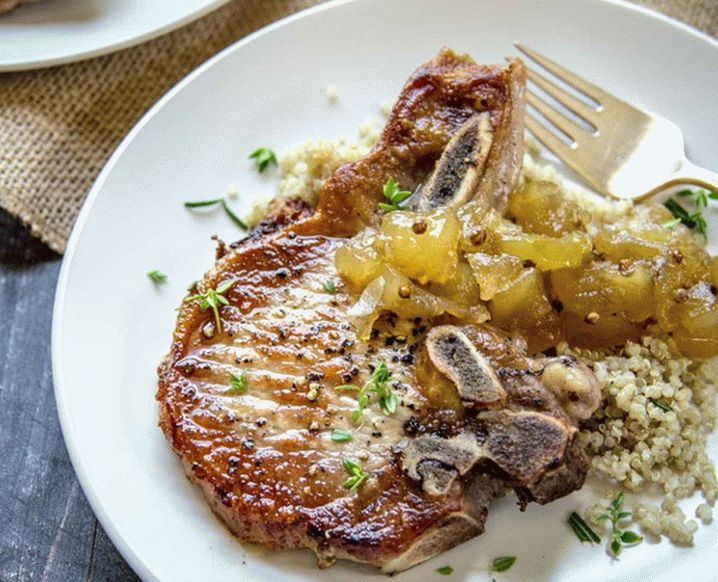 Un plato simple y muy fragante: deliciosas chuletas de cerdo en cocinar en casa, premarinar en limón jugo, aceite de oliva con ajo, romero y tomillo. Luego solo freír en una sartén.