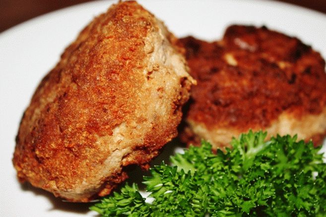 La receta clásica para cocinar en casa deliciosas chuletas de cerdo carne picada En lugar de pan blanco, agregue migas de pan y para agregue la carne picada con cilantro molido y semillas de alcaravea. Lata de guarnición haz lo que quieras
