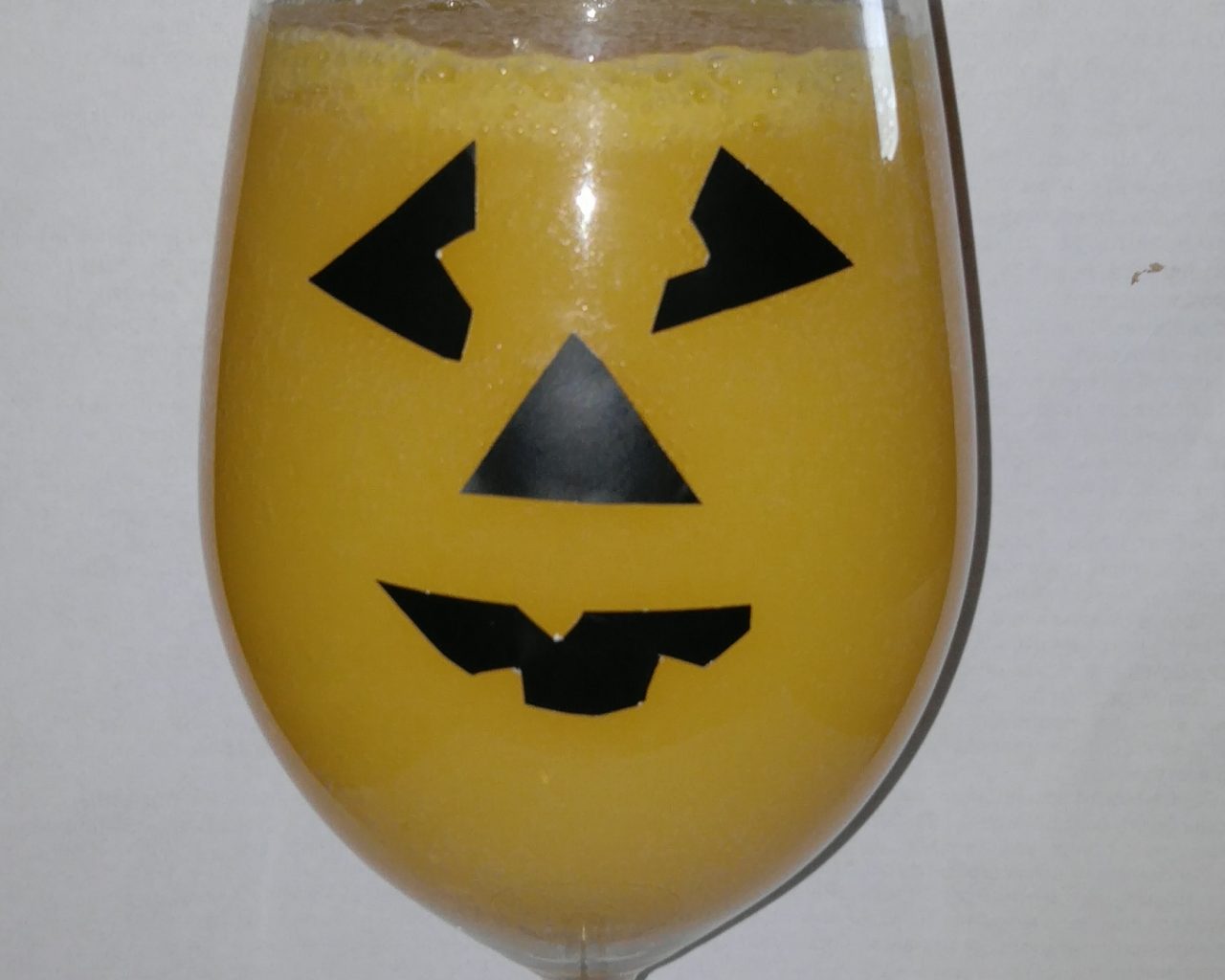 - Cortar y pegar en el vaso barrigón de ojos, nariz y boca. Para el cartón autoadhesivo negro servirá. Mezclar naranja jugo y schweppes en una proporción de 3: 1. Añadir 50 gramos de helado. Miedo pero divertido Jack está listo.