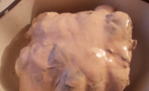 - Frota tu molde y colócalo en un horno precalentado por 2.5 horas (150 C).