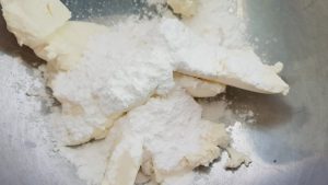 - Batir el requesón con azúcar en polvo con mezclador