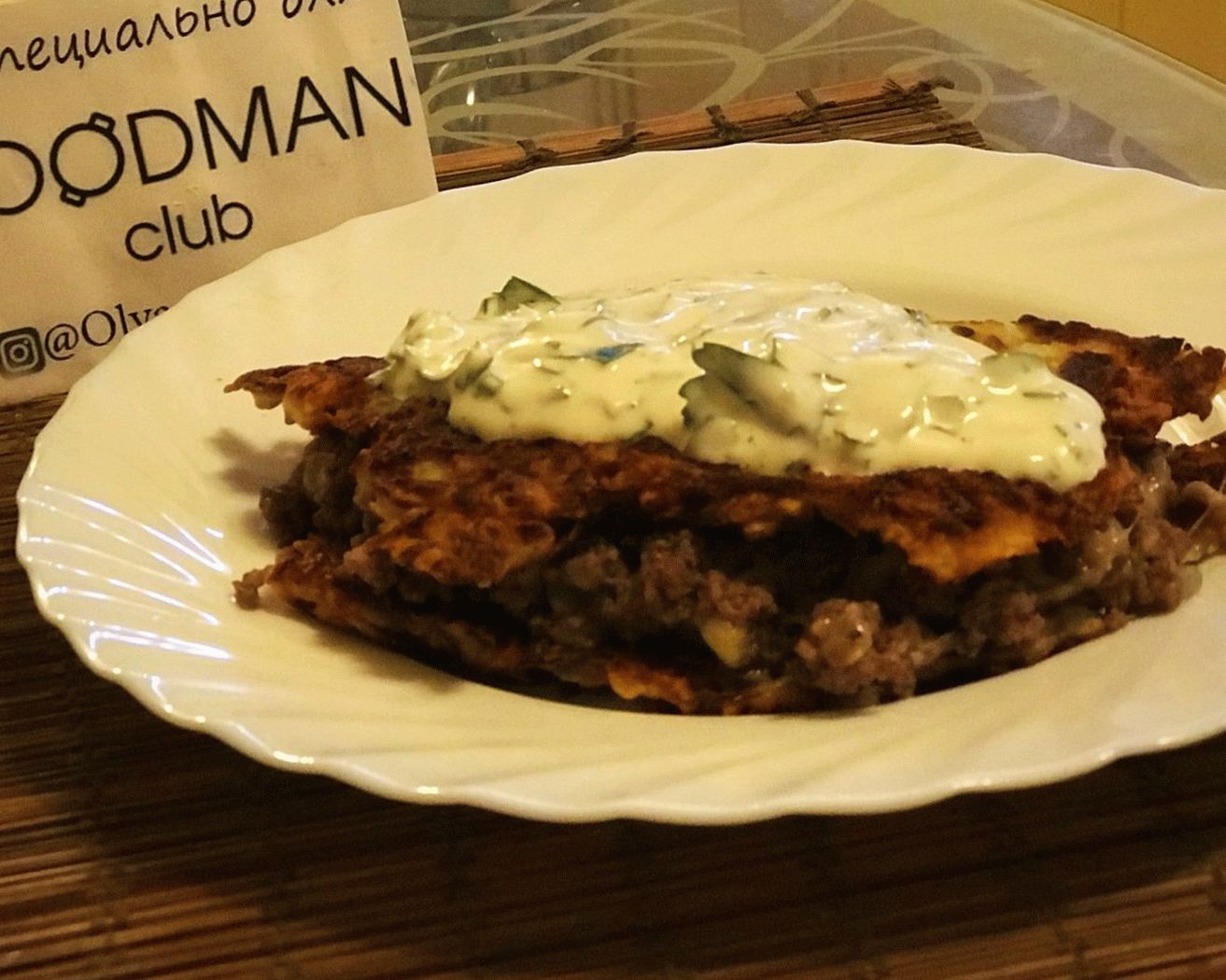 - Corta el panqueque terminado por la mitad, ponlo por la mitad La carne picada cierra la segunda mitad, vierte la salsa encima. Buen provecho!
