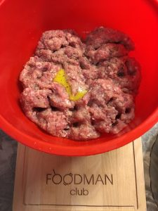 - Prepara carne picada de cerdo y ternera. Cortar en pequeños trozos de carne de cerdo y ternera, cebolla en varios trozos. Arranca todo en una picadora de carne, allí, voltea el pan blanco empapado en leche. Sal y pimienta (puede agregar pimentón si lo desea). Amasar carne picada con las manos y romper el huevo allí. Mezclar bien manos