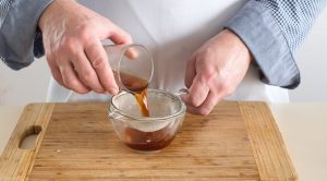- Vierte té negro con 80 ml de agua hirviendo y deja que se prepare, después filtro Con esta solución, lubricaremos los pasteles.
