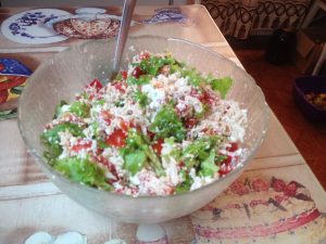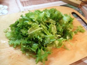 - Lave las hojas de lechuga con anticipación para que pueda salir el exceso de humedad. Cuando la ensalada se seque, no la pique, es mejor rasgar las hojas. manos en pedazos pequeños.