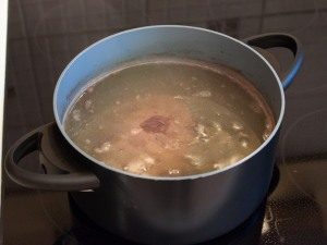 - Hervir los frijoles previamente remojados hasta que estén cocidos.