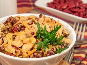 - Sazone al gusto con crema agria espesa o mayonesa, puede hecho en casa, servir en ensaladeras en porciones, adornadas con verduras.