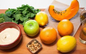 Los amantes de la calabaza sugieren preparar una deliciosa ensalada casera con calabaza, hummus y manzana al horno. Tal ensalada se puede hacer en en el desayuno, también decorará una mesa festiva o una cena con amigos.