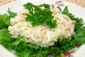 Una deliciosa ensalada de mariscos saludables y asequibles. casa. Lo más importante es hervir los calamares adecuadamente, debe poner en agua hirviendo durante exactamente tres minutos, ni un segundo más, está lleno obtenga un producto de goma no masticable Antes de bajar calamares en agua hirviendo, ajuste el temporizador durante tres minutos y luego tome la señal de inmediato y obtendrá carne tierna y jugosa calamar