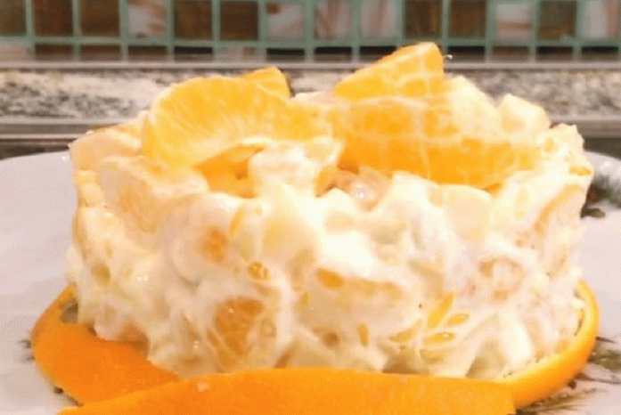Ensalada ligera casera original y fácil de preparar con Una combinación inusual de sabores de frutas y carne de conejo.