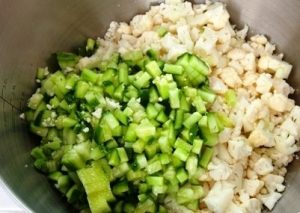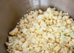 - La coliflor debe cortarse en trozos pequeños que Más pequeño es mejor. Extender en un bol.