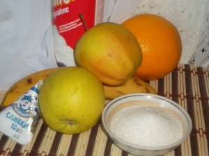- Lave bien las frutas. Pelar los plátanos, cortarlos en círculos Lo extendimos en un plato plano con la primera capa.