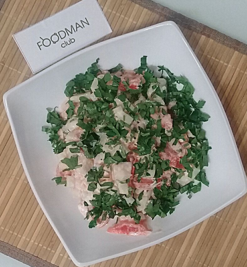 - Moler el perejil, espolvorear la ensalada encima. La ensalada está lista para sirviendo, buen provecho.
